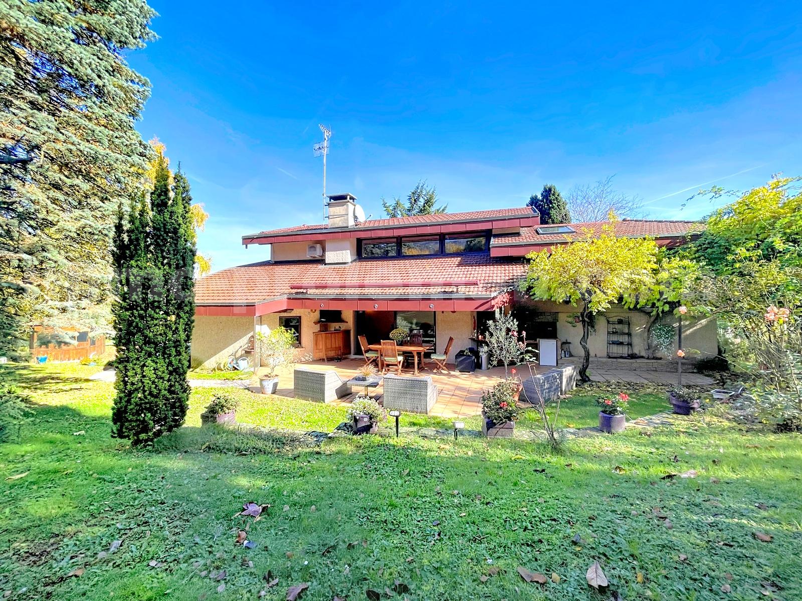 Sur les hauteurs, dans un environnement calme et verdoyant, cette villa d’architecte offre une vue à couper le souffle sur les montagnes et un cadre de vie privilégié, à seulement 5 minutes du centre de la commune et de toutes les commodités, et 10 minutes de la frontière Suisse.