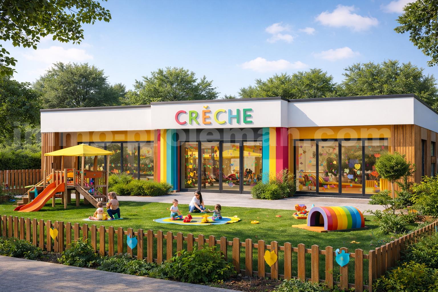 Le bâtiment est récent, fonctionnel et clé en main, ne nécessitant aucun travaux, garantissant une gestion sereine et pérenne. La crèche dispose d’un espace intérieur de plus de 251 m² et d’un espace extérieur de 150 m², offrant un cadre agréable pour les enfants et favorisant l’éveil en plein air.